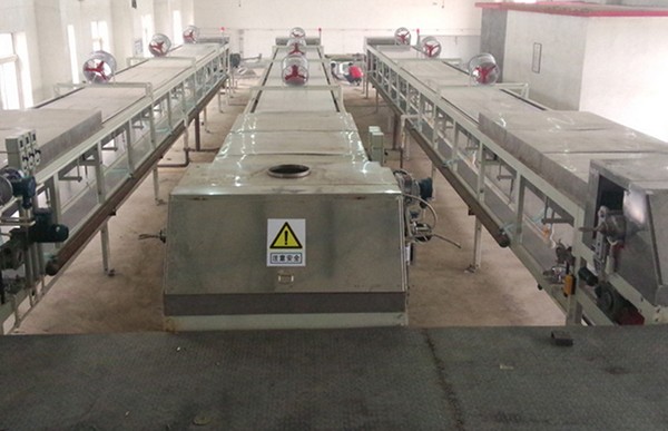 將來自上游工序熱融態(tài)物料通過造粒機(jī)布料器(右圖)均布在其下方勻速移動的鋼帶上,鋼帶下方設(shè)置有連續(xù)噴淋、冷卻裝置,迫使鋼帶上方的物料在移動過程得以快速冷卻、固化,從而達(dá)到造粒成型的目的。依據(jù)物性和使用要求,其布料器可選擇斷續(xù)滴下、連續(xù)拉條和全寬度溢流等不同形式,以分別生產(chǎn)半球狀、條狀和片狀產(chǎn)品。